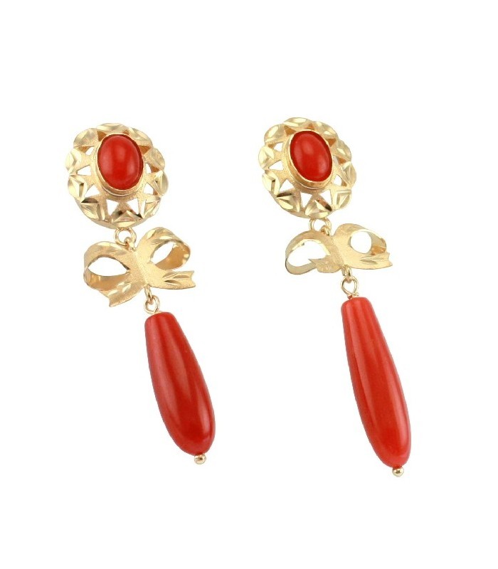Pendientes mujer de Oro 18K - "Cubana" Lazo con chupón de coral rojo