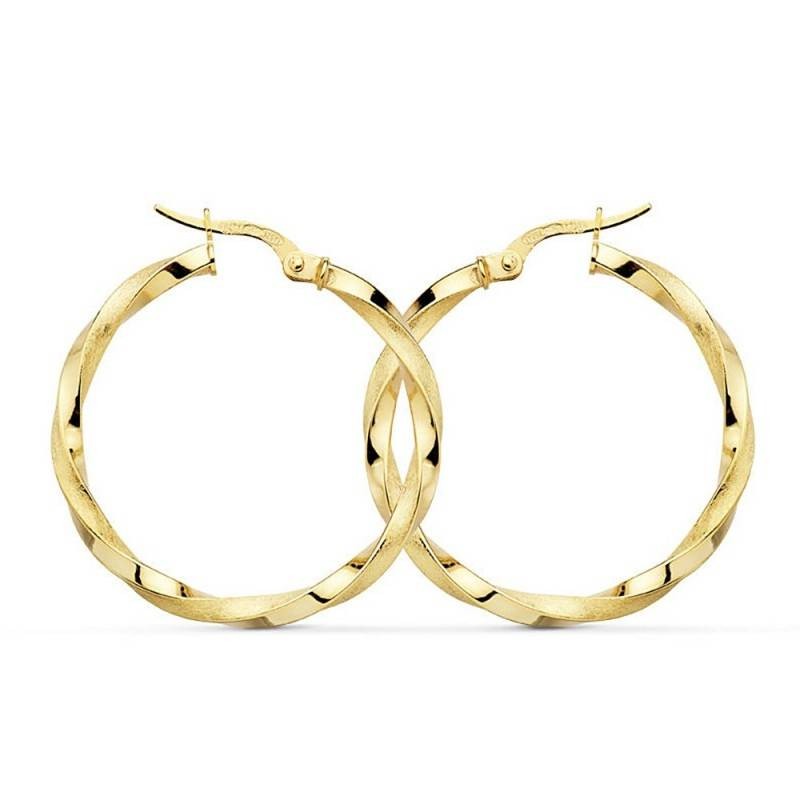 Pendientes oro 18k aros 29mm. mate brillo retorcidos