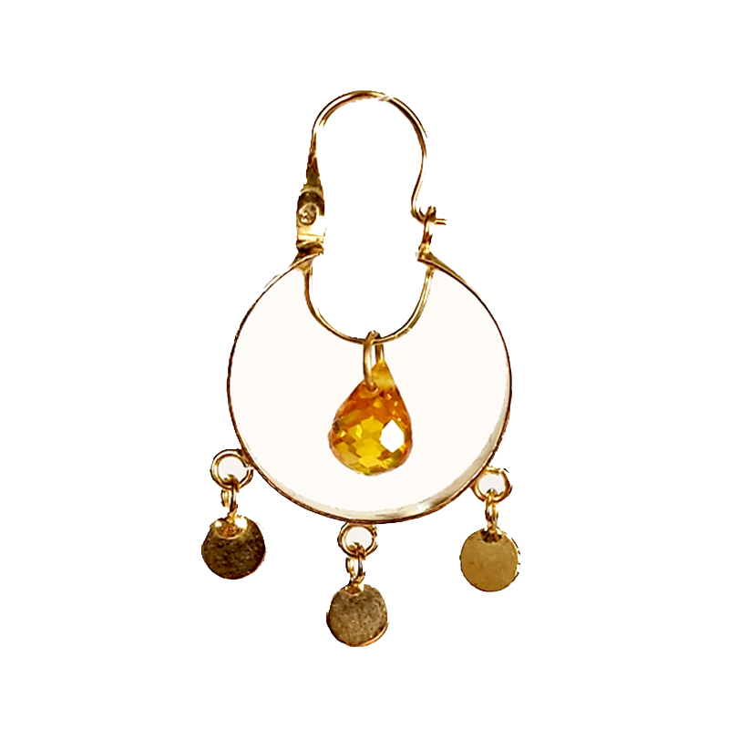 Pendientes Aros mujer de Oro 18K - Cristal Naranja y Colgantes Redondos